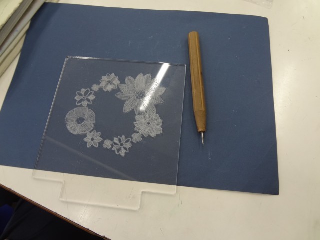 ニードルでデザインを彫り進め、そろそろ完成を迎えるようです。
