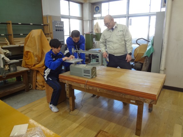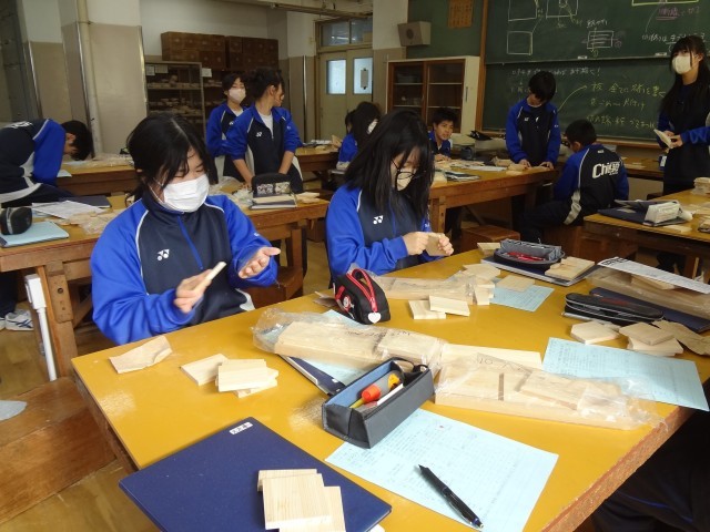 やすりやのこぎりを使い、自分のペースで作業を進めています。