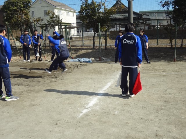 こちらはグラウンドで幅跳びをしています。
