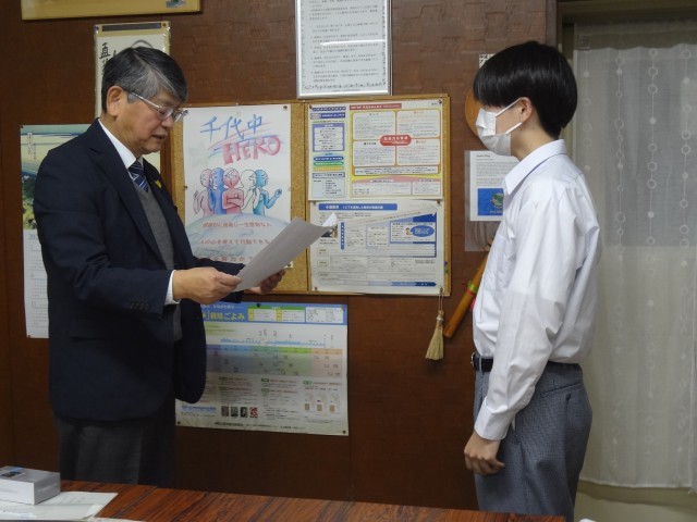 千代中学校は、最優秀賞、優秀賞、佳作の3点が入賞という素晴らしい結果となりました。