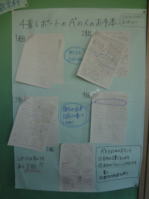 4階の廊下に、数学のレポートのお手本が掲示されていました。