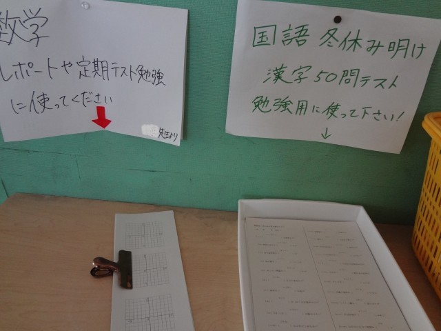 また、復習に使える学習プリントも気軽に誰でも取れるように置いてあります。