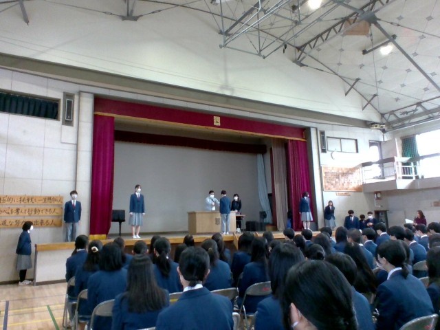 3年生は今日も卒業式の練習です。4・5組の証書授与練習をした後、入場から全クラスの証書授与、退場までを通して行いました。1組から5組までの証書授与は42分間かかりました。練習とはいえ、その間緊張感をもって席に座っているだけでも疲れます。本番はもっともっとプレッシャーで一杯になることでしょう、しっかりと練習して当日にのぞめるようにしていきましょう。練習が終わって4校時の後半は、明日の卒業遠足の事前説明でした。ちょっとお天気が心配ですが、良い思い出がつくれるように、楽しんできましょう。