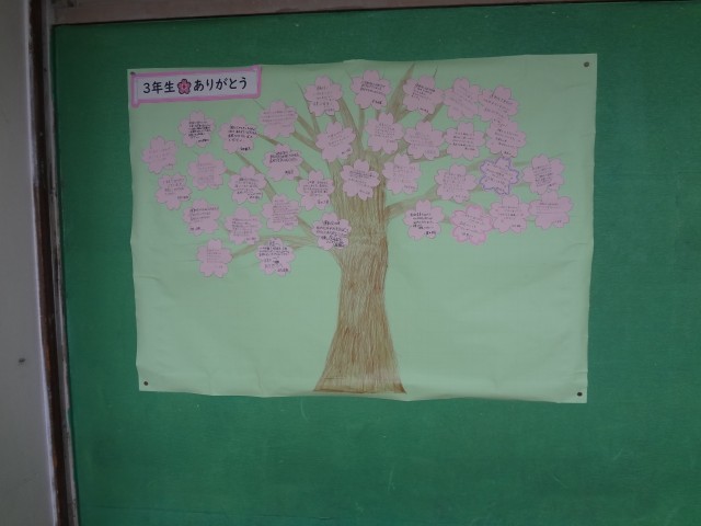 3年生が生活する2階の廊下は、卒業式に向けた掲示物で溢れています。