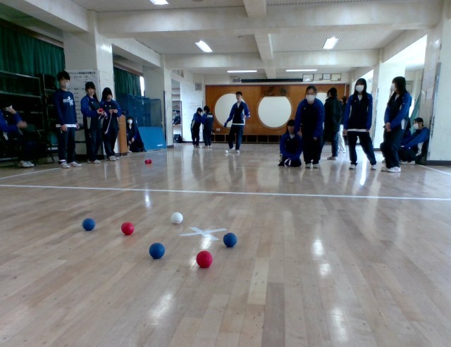 3年生は1〜3校時を使い、スポーツ大会を行いました。多目的ホールでは「ボッチャ」なかなか上手です。体育館は「バスケットボール」迫力満点です。グラウンドではバレーボールの予定でしたが、昨日の雨で外のバレーコートがぬかるんでいるため乾いている場所を使って「ドッヂボール」になりました。このドッヂボールが思いのほか盛り上がり、最後は上位2チームで優勝決定戦まで行いました。
