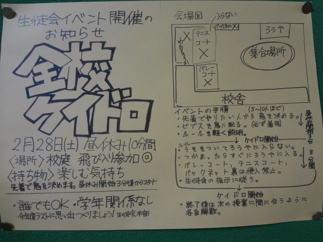 そしてなんと昼休みには、生徒会主催で「全校ケイドロ」が企画されています。