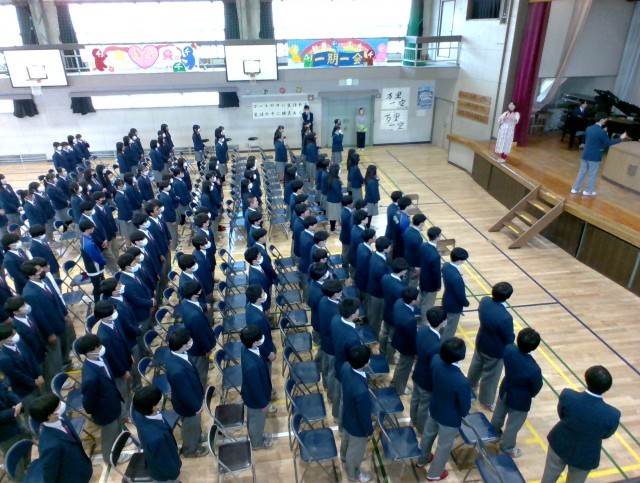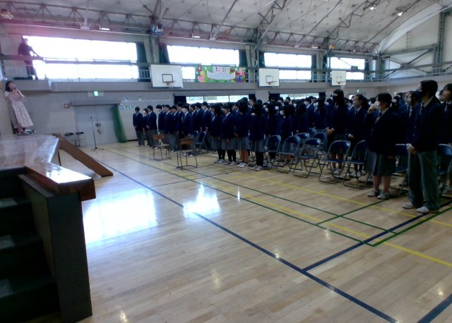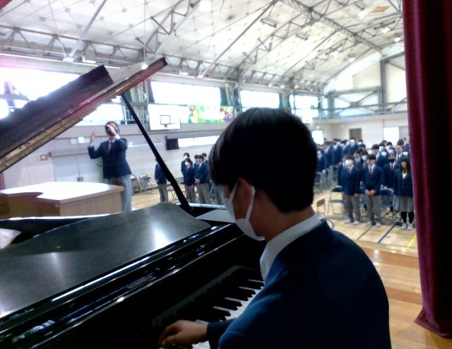 土曜日ですが午後からふれあい美化作業があるため、今日は学校があります。3年生は2・3校時に式の練習を行い4校時は体育館で合唱練習です。これまでパート練習をしてきましたが、全員であわせるのは始めてです。でも、始めてとは思えないほど、力強くきれいな合唱になっていました。これならば、卒業式当日にきっと素晴らしい歌声を披露してくれることでしょう。