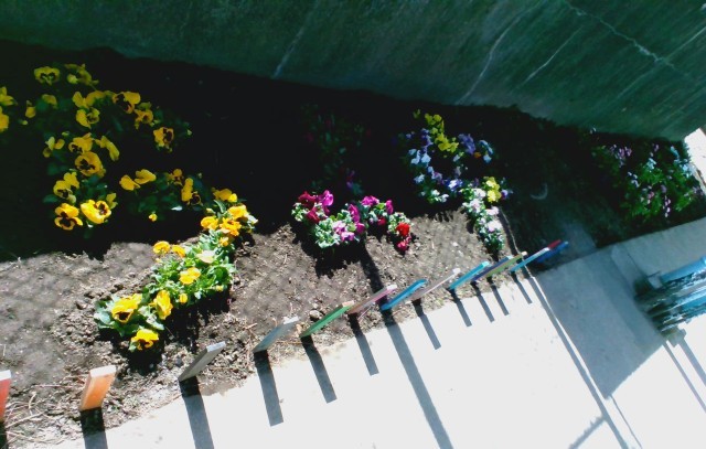 3年生が登校するのも今日を入れて5日となりました。いよいよ大詰めです。1・2校時には、担任の先生から中学校最後の通知票を受け取りました。3校時はお楽しみ会が行われました。(残炎ながら写真を撮りに行けませんでした)4校時は式で歌う合唱の練習、練習を繰り返すたびに上手になっていきます。練習が終わって教室に戻る途中、体育館への渡りの横のスペースに7組の1・2年生と先生が花を植えてくれていました。よく見ると手前から「ちよ中ヒーロー」と花文字が描かれるように植えられています。卒業していく3年生の花道を、きれいに飾ってくれていました。ありがとうございます。