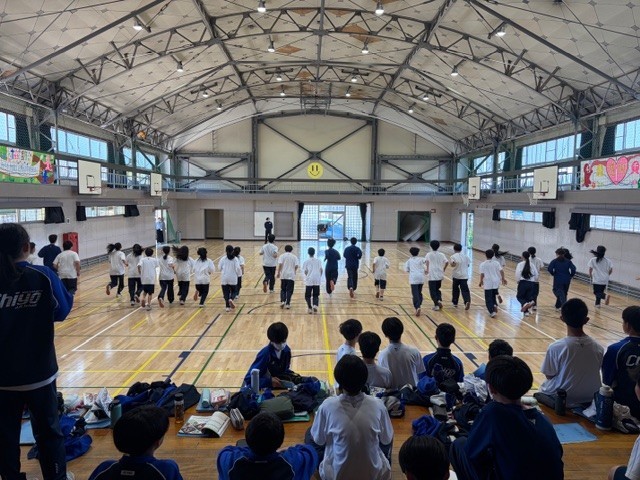 保健体育の授業では、体力テストを行っています。写真は20mシャトルランテストの様子です。