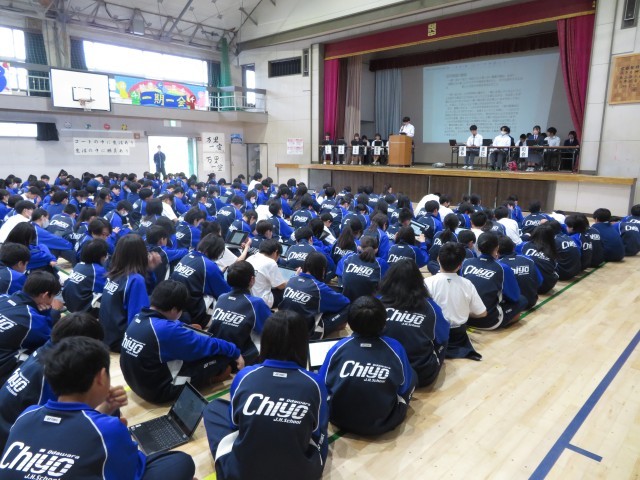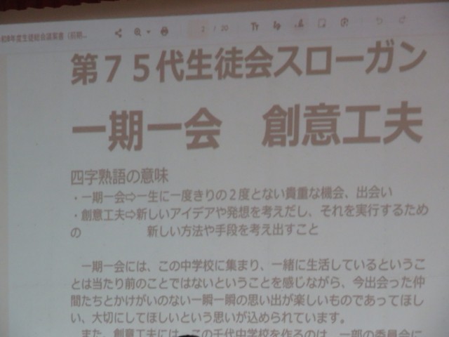 4月27日には、生徒総会が開かれました。生徒会本部役員や委員会委員長たちが中心となって会を運営し、質問や意見に答えながら今年度の生徒会の運営について話をしていました。