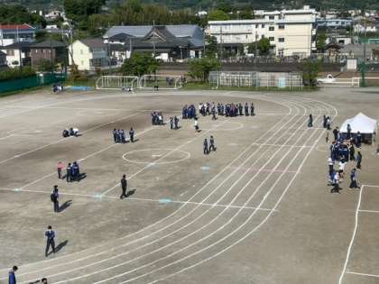最後にグラウンドに残った体育委員が、開閉開式のリハーサルを楽しそうに行っていました。