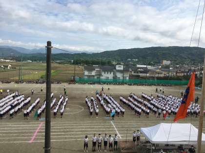 晴れと曇りの間の天気ですが、みんなの顔は晴れ晴れしています。交流会始まりました!