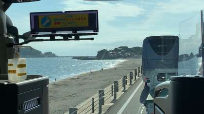 軽い渋滞のなかバスはゆっくり、着実に、東へ。