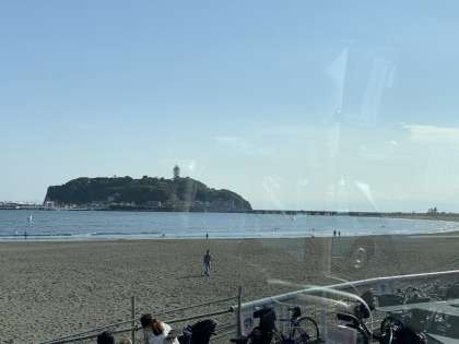 腰越漁港をすぎ、もうすぐ江ノ島を通過します。