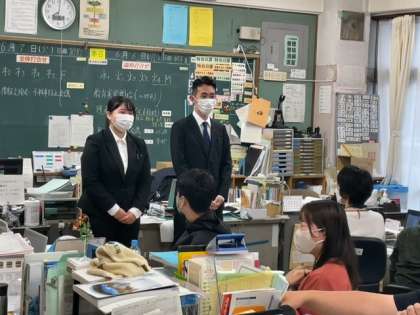 6月6日(月)、今日から24日(金)までの日程で、教員をめざす大学生2名の教育実習がスタートしました。実習生は2名とも第3学年に所属し、主に国語科と社会科の授業に入ります。