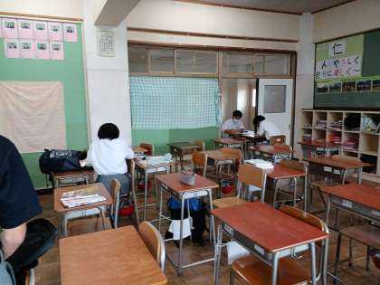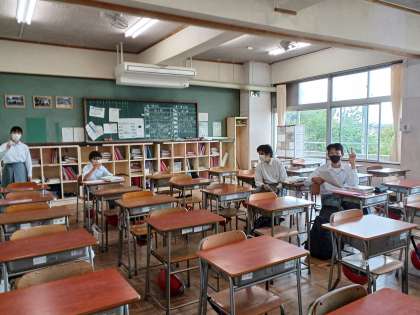 今日は3年生の前期定期テストが行われます。7時30分、各教室には早くから登校してテストに向けて勉強する生徒たちの姿がありました。1番上の写真、教室のドアを挟んで廊下に机を出して勉強しているのは、隣のクラスの生徒です。行事に、勉強に、部活動に、前向きに取り組む生徒たちから、3年生としての自覚が感じられました。