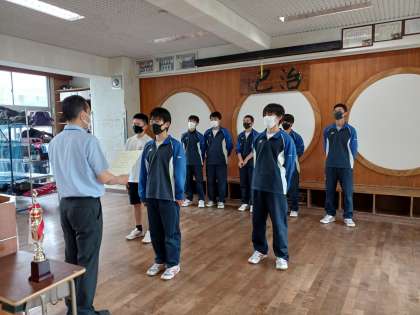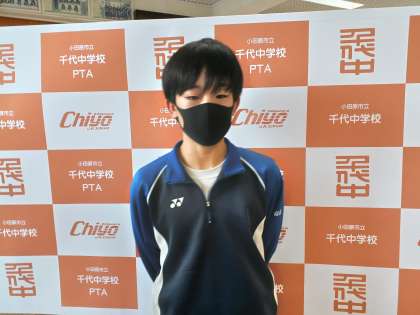 昨日に続き朝学活の時間に表彰式を行いました。今日は、千代中ロゴの背景を「代表生徒からの一言」のバックに使いました。