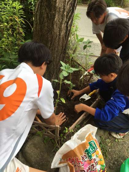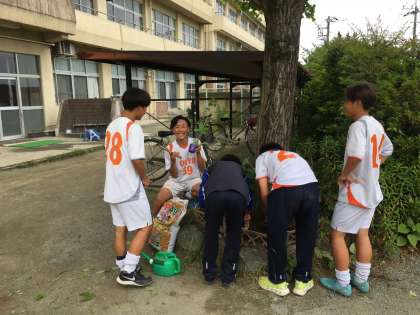 今日は、練習前のサッカー部の皆さんが、校地内に植えるのを手伝ってくれました。サッカー部の皆さん、ありがとう!!