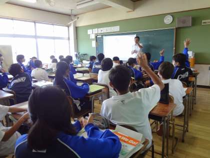 スクリーンに映し出されたイラストを見て、何か答えます。