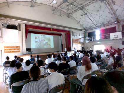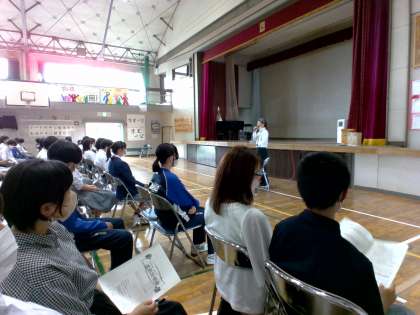 後半は近隣の公立・私立高等学校の先生にご来校いただき、それぞれの学校の特色や高校生活についてご説明をいただきました。短い時間でしたが、それぞれの学校の説明だけではなく、受験(検)に向けて頑張ってほしいことや取り組んでほしいことなど、3年生の生徒たちに貴重なアドバイスを頂きました。