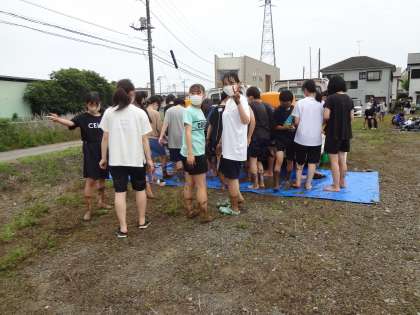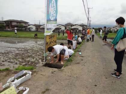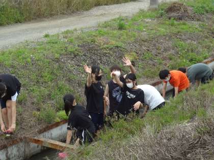 用水路で泥を落として、用意してくださったきれいな水で洗います。