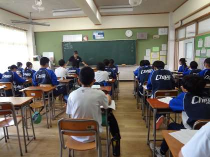 先生の解説を聞いて、解答用紙に赤ペンで正答を書いていきます。