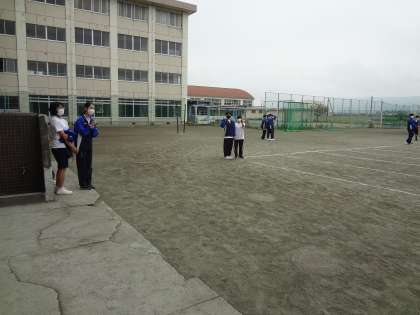 雨がぽつりぽつりと降り始めたようですが、何とか外でできました。
