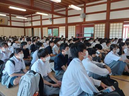 薬師寺では、お坊さんかからお話を聞きました。まるで漫才師のような楽しいお話でしたが、人生の教訓にお話しでした。生徒の皆さん、ちゃんと心に残っていますか?