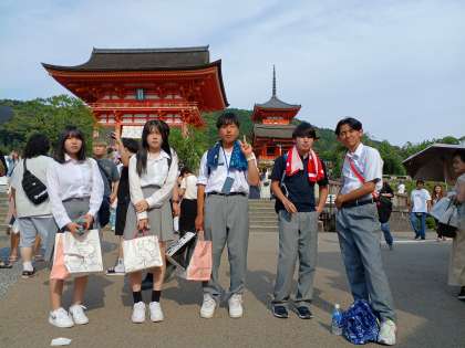 一度清水寺を離れて、京都駅周辺をうろうろと歩いていると見覚えのある制服姿、女子だけだったので、男子は?と聞くと迷子になっているとのこと、男子と合流できたので次の目的地を聞くと清水寺。また、清水に戻ることにしました。