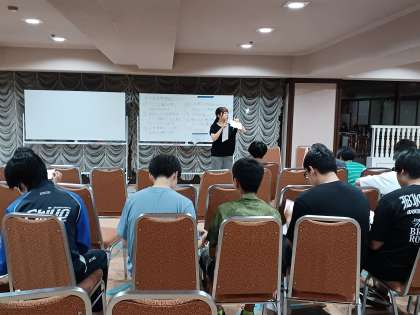 昨日と同様に、時間をくぎってクラス会議を行いました。クラスの1日の反省の他に、明日の朝送る荷物の荷札の付け方なども確認しました。