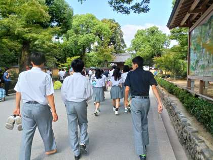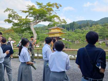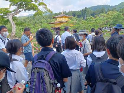 金閣寺に到着しました。突然現れた金ピカに、ワーッとため息がもれます。