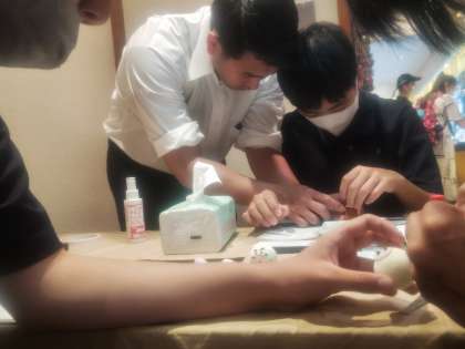 修学旅行3日目の今日、嵐山にて「ちりめん細工」のおきあがり小法師をつくりました。