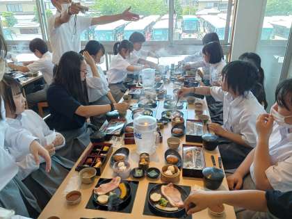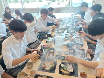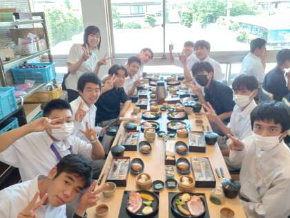写真撮影のあと一時間弱のお土産タイムを挟んで、お昼ごはんです。今日は久しぶりに対面で食事をします。