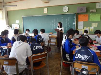 班ごとにテーマを決め、自分の考えをまとめたあと、班で共有して説得力のある意見になるよう検討しています。