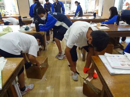 今日の学習は、「のこぎりの使い方を学び実際に切ってみる」です。