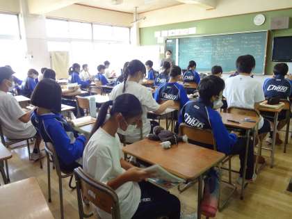 1年3組は、社会の授業です。
