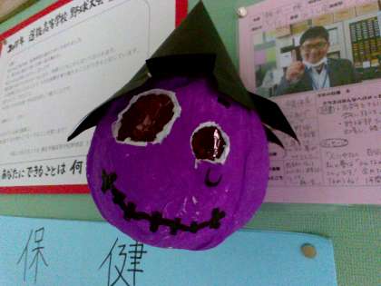 美術部が10月に入ってから細々とつくっていたハリコのハロウインパンプキンを、校舎のあちらこちらに設置しました。よーく見ないと気が付かれないかも…、各階に何個あるか探してみてください。もし風に飛ばされて落ちていたら、優しく元に戻してあげてくださいね。