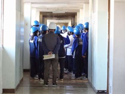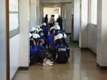 震度7という大地震にみまわれ、大津波警報が発令されたという想定で上階避難訓練を行いました。