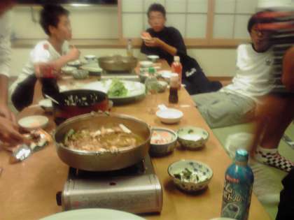 初日の夕食のメニューはすき焼きです。食べ始める前は、お腹がすいたと言っていた男子も食べきれず…、それでも何とか最後まで頑張っている生徒もいました。