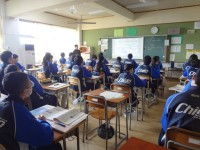 1年生はプリントと図鑑を持って校庭を探検していました。校庭にある植物を探して、プリントの校舎配置図に花の咲いていた場所と花の名前を書き込んでいました。暖かな春の日の、午後の授業ならではの校内風景でした。