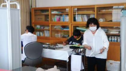 5校時は耳鼻科検診です。学校医の鈴木正彦先生にお越しいただきました。私は左耳の聴力がなく、しかも鼻は高いのですが曲がっていてアレルギーがあり、今も突然鼻水が止まらなくなります。そうならないように、中学生の時からしっかりと治療するのはとても大事です。