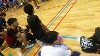 写真(下)は、試合が終わって笑顔の男子たちです。県西ブロック大会への進出が決まり、次も頑張って欲しいです。