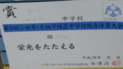 写真(上)の右端に写っている会場責任者の栢本教頭先生から賞状を受けとりました。県西大会ではリベンジで、優勝を!