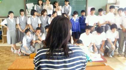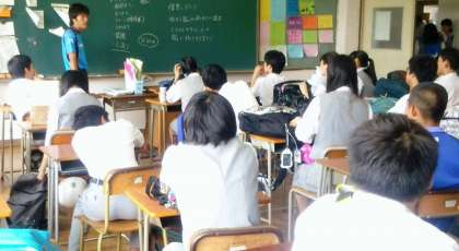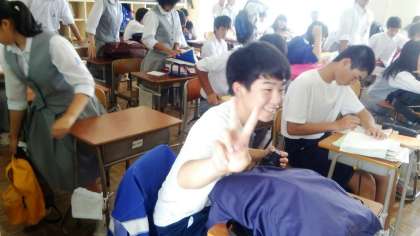 写真(中)の石井豪先生は「君たちと夏休み中会えなくて寂しい」と言っているところです。そして黒板をつかって丁寧に「9月1日の持ち物」についてしっかりと確認していました。
