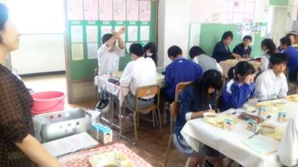 3年6組が千代中学校の中で、いちばん整然と給食を食べるクラス…と私は感じました。整然と食べなくても、どのクラスもそれぞれ個性があってとてもいいです。