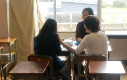 3年生の三者面談は、今日が最終日となりました。写真は、6組担任の岩崎英恵先生の面談の様子です。