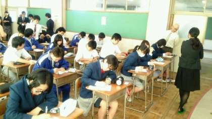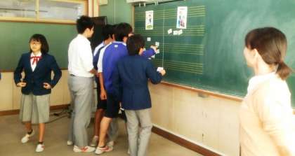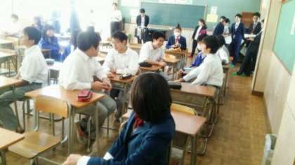 今日の6校時は、新妻和音先生の「道徳」の公開授業でした。中学校教育研究会の道徳部会所属の各中学校の先生方も来校し、今日の授業を見ていただくために、3年4組教室ではなく、一般教室よりも広い音楽室で「道徳」の授業を行いました。