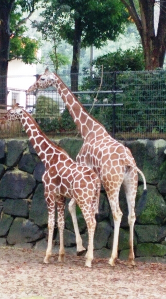 写真(下)はキリンです。親子仲良く寄り添っていました。