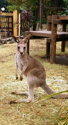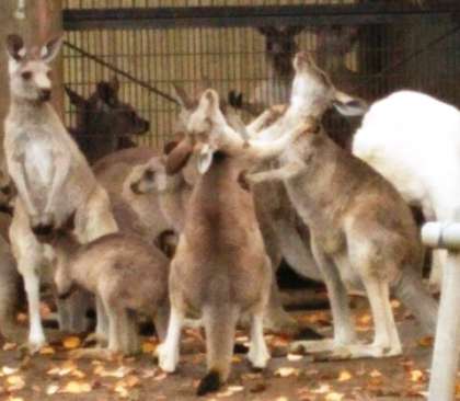写真(中)はカンガルーです。“可愛いなぁ♡”と見ていたら、写真(下)のようにケンカが始まっていました。ハードにキック&パンチを互いに繰り返していました。