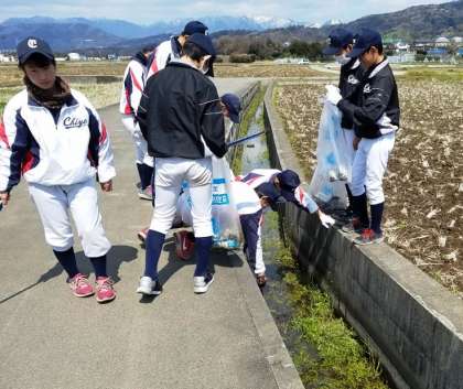 野球部が地域の清掃を行いました。下曽我駅まで歩きながらきれいにしました。